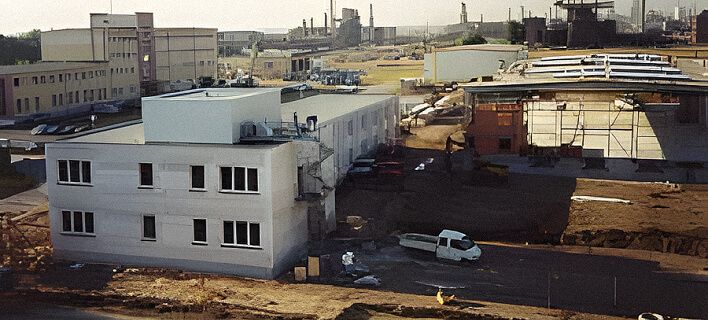 Закладка нового административно-складского комплекса в Лойне, всего лишь в нескольких километрах от прежнего местоположения завода Mineralölwerk Lützkendorf в небольшом населённом пункте Крумпа.